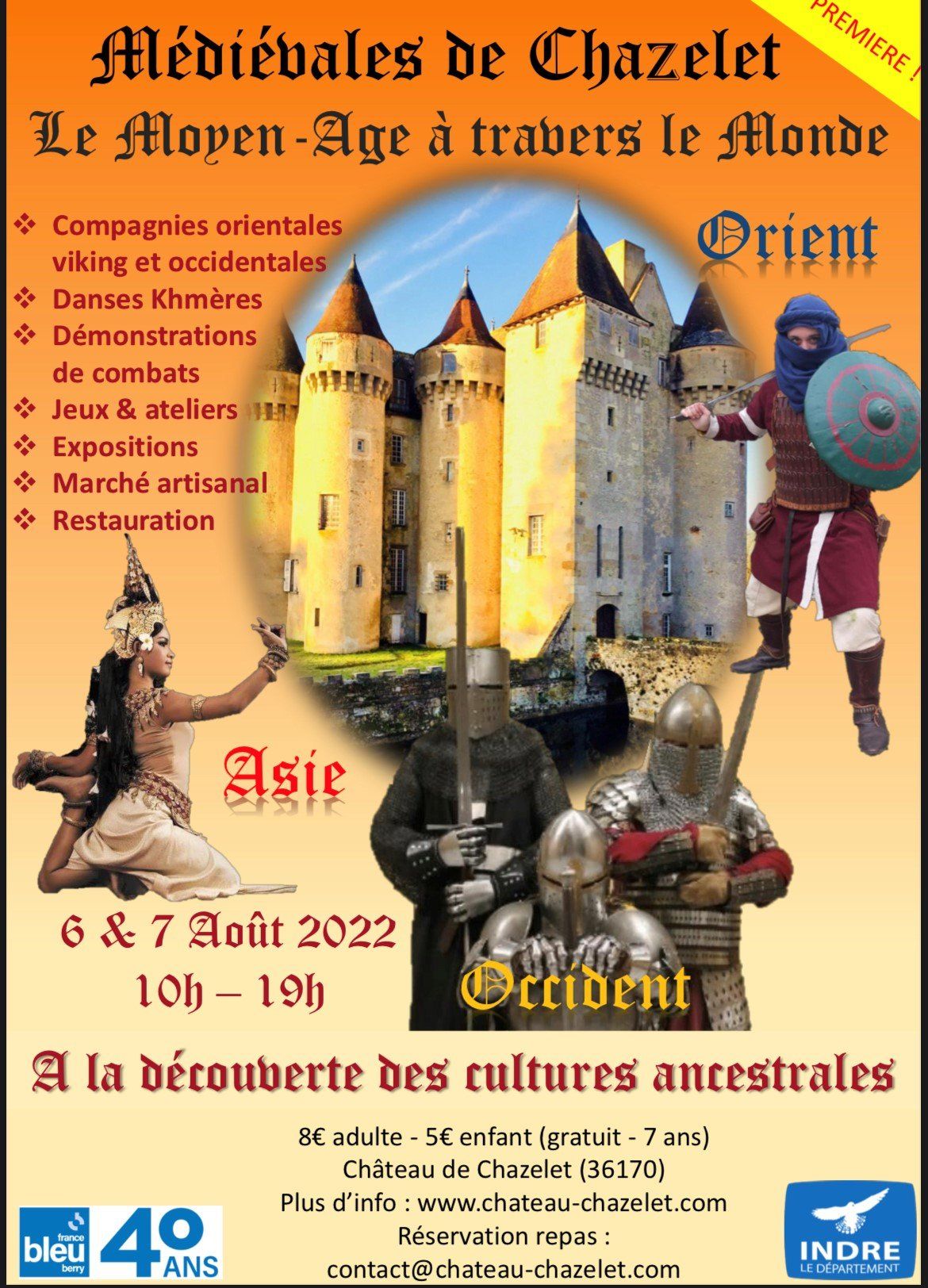 Animations tout au long de la journée : Atelier création de blasons, combat petits chevaliers (adoubement), présentation d’armement, tir à l’arc, jeux anciens, atelier arbalestrie, atelier alchimie, atelier plantes médicinales, atelier tissage et broderie, ferronnerie, enluminure, atelier initiation à la danse Khmer.